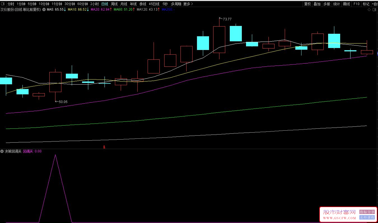 指标名称:通达信决策回调买副图+选股 牛股回调买入等拉升分享 附图