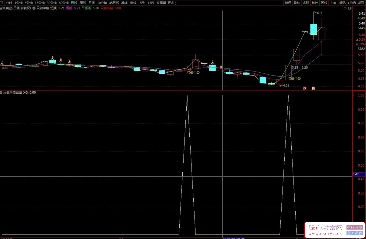 1、给大家分享只做中段指标,包括副图和选股指标,选股也可以作为盘中预警,帮助大家实现只做中段的愿望,肉非常多。