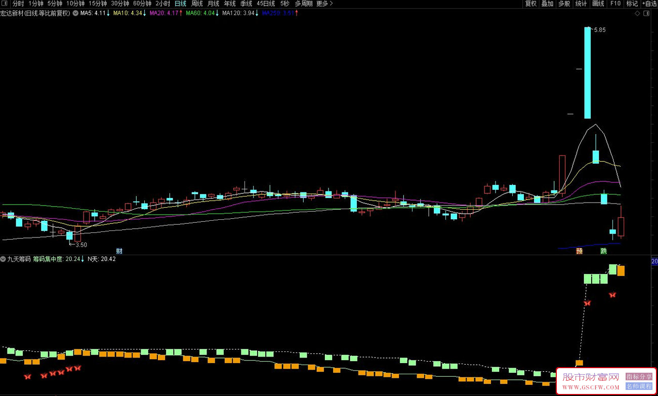 指标名称:通达信九天筹码副图指标神器分享 附图