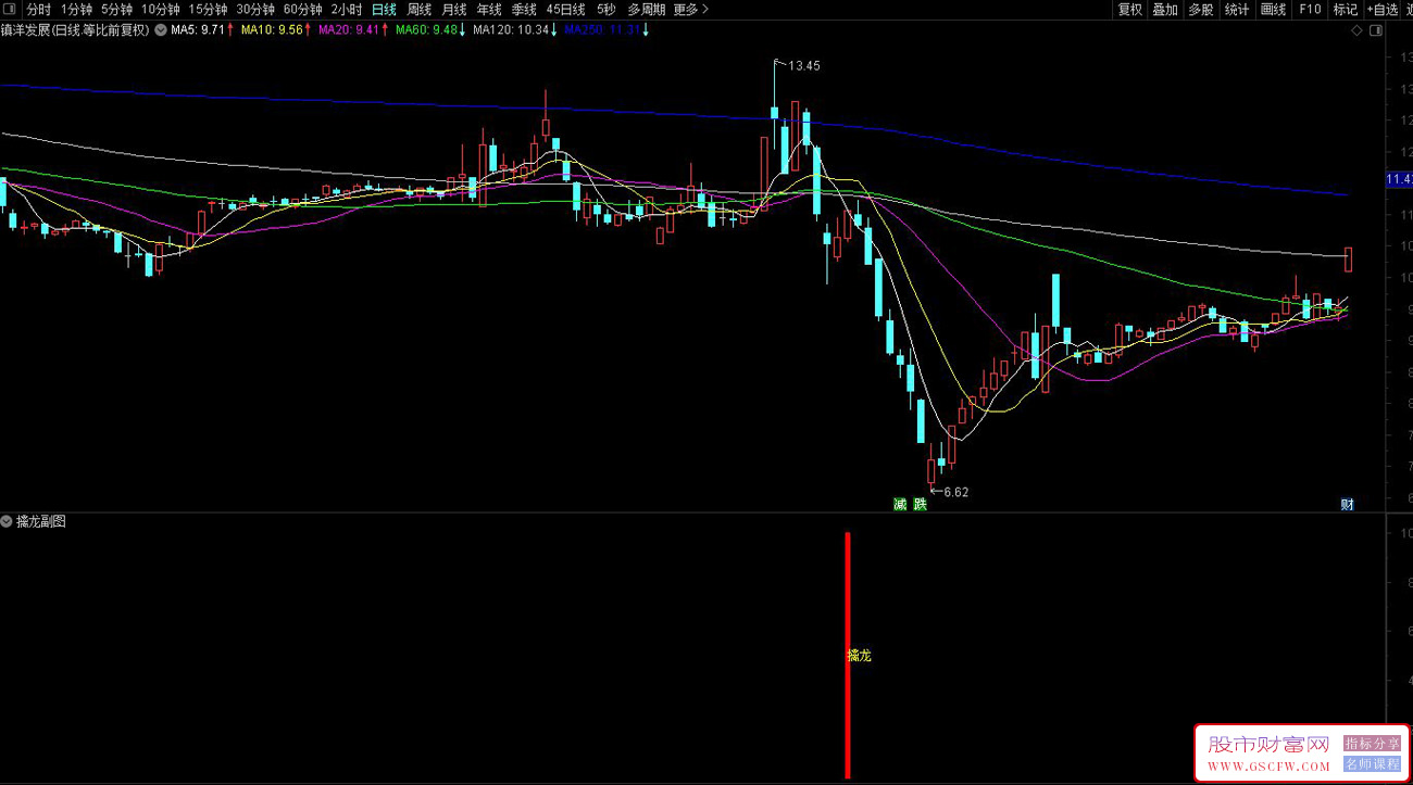 指标名称:通达信【金龙至尊】副图+选股指标 盘中出信号后根据热点板块进行跟踪 附图