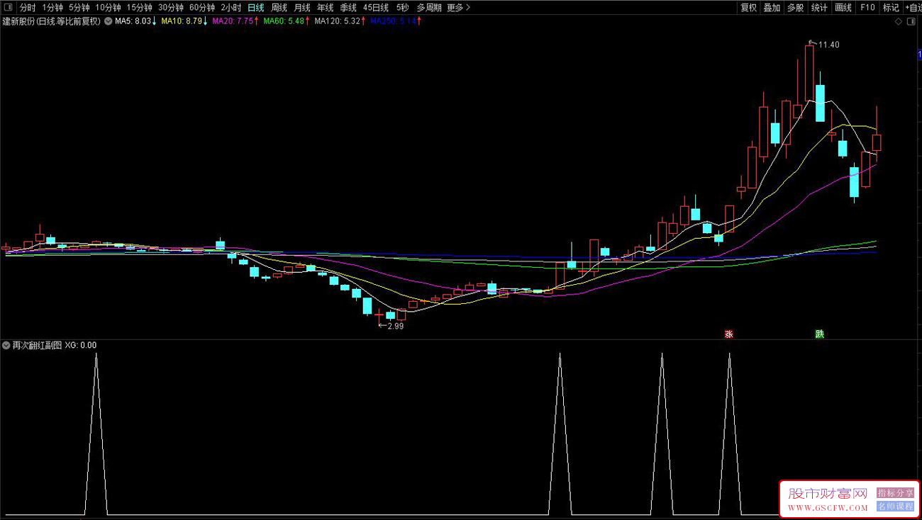指标名称:通达信【再次翻红】副图+选股 天天账户红彤彤附图