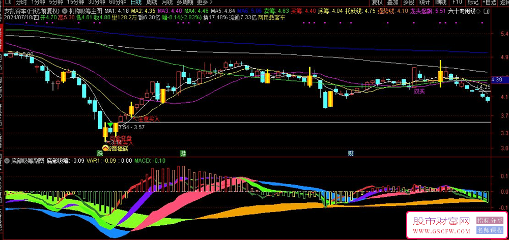 指标名称:通达信“机构抄底 机构吸筹”主副图+选股指标 机构动向一览无余附图