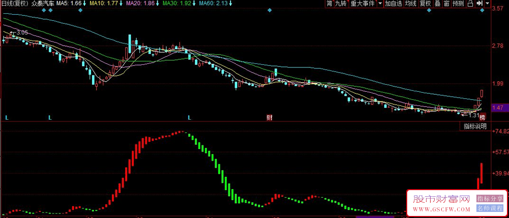 红柱持股,绿柱持币,黄柱突破,蓝柱击穿