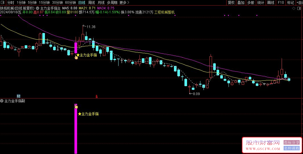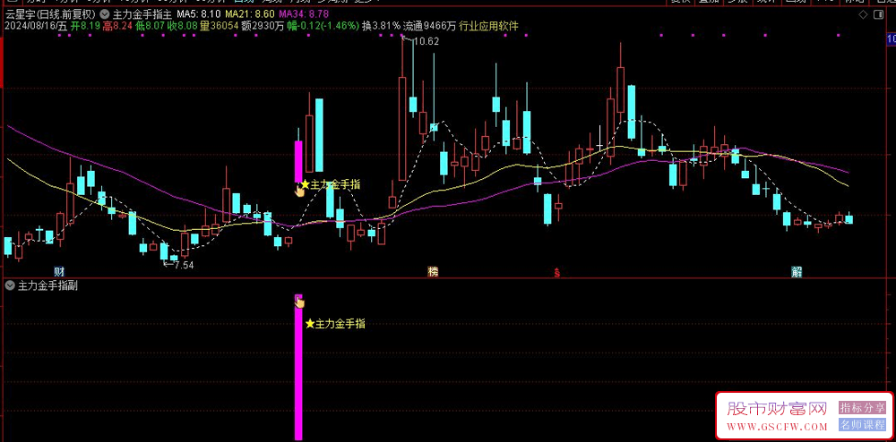 5、主力金手指主图指标,辅助你在出票后查看手指信号显现的位置,在根据当前热门板块,个股基本面,再做出买卖判断。
