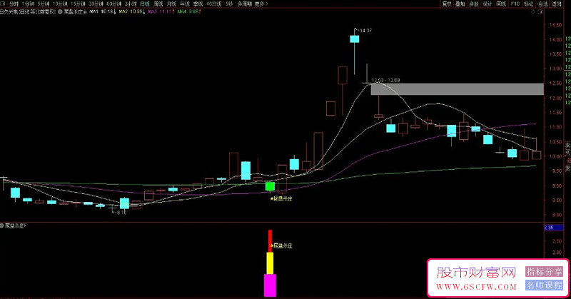 【指标名称】:通达信尾盘杀庄策略副图+选股指标- 尾盘买阴