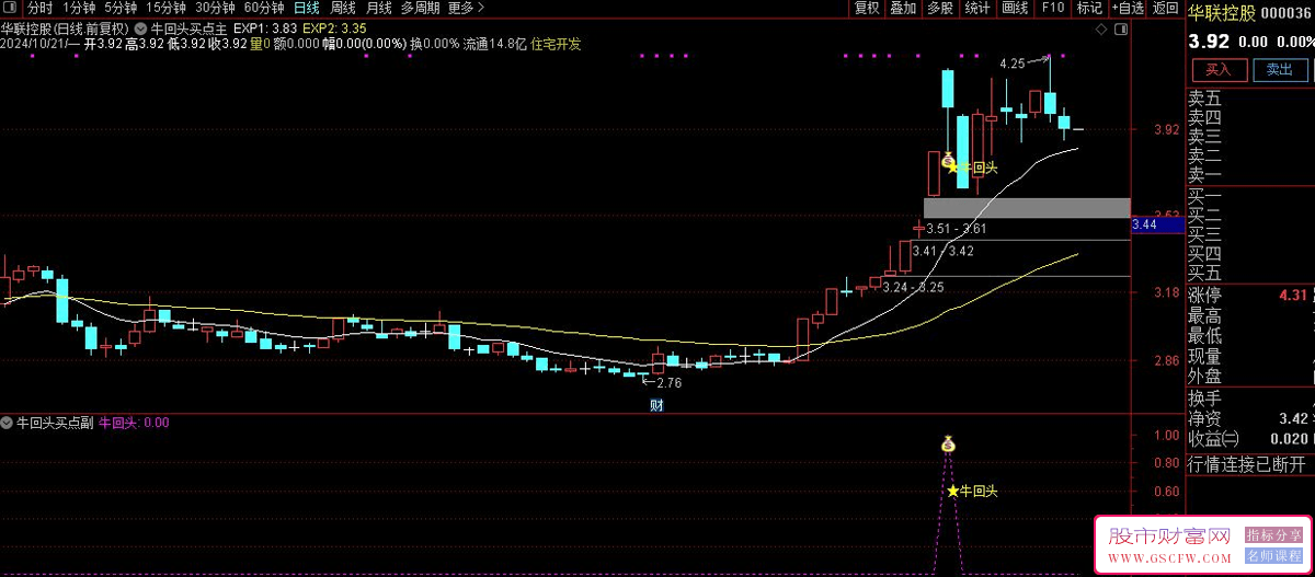 投资黄金法则:一旦主图与副图中同时出现“牛回头”信号,即可视为最佳入场点。