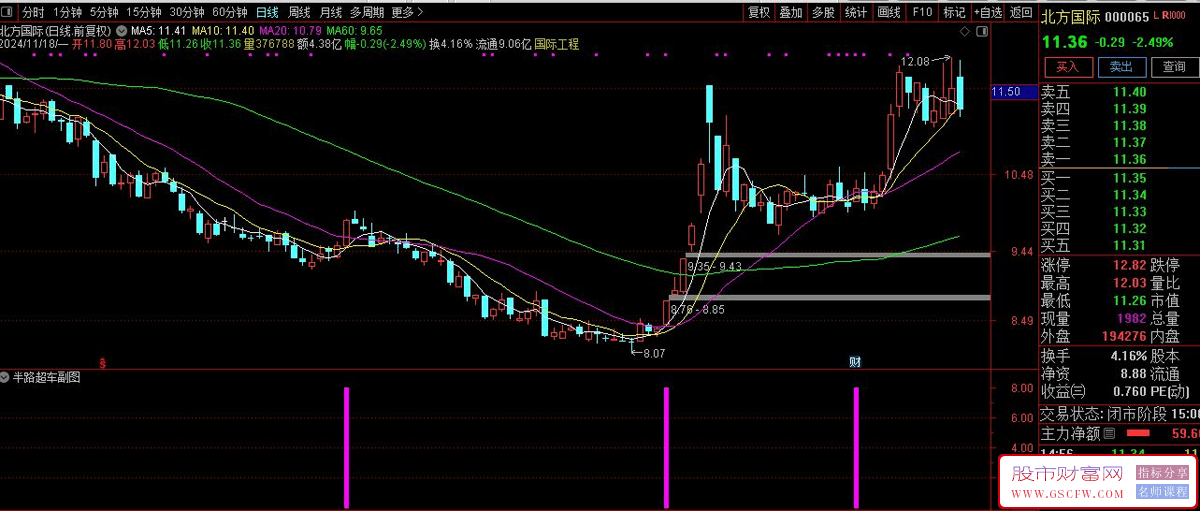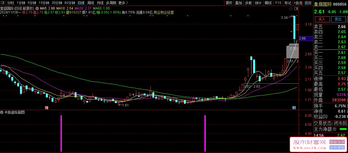 该技术指标名为“半路超车”,意指在市场波动中抢占先机。它是一套不包含未来函数的指标。