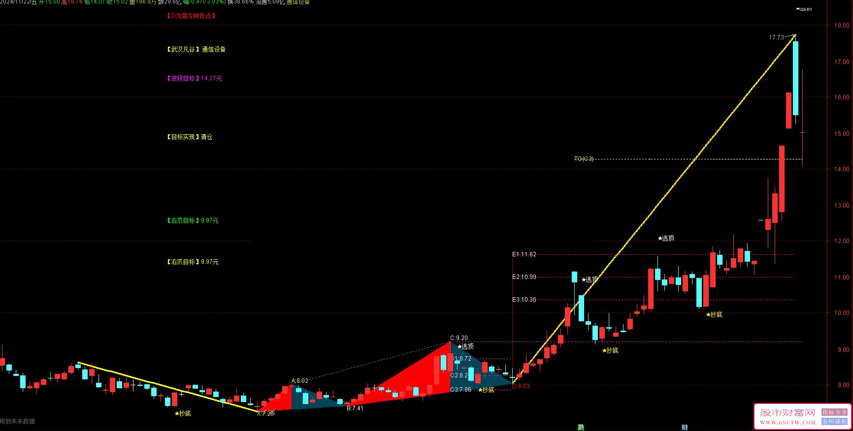 - 图表右侧显示波段目标价和上涨空间,帮助您快速评估潜在收益。