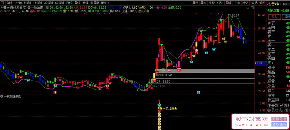 该工具专为通达信交易平台中的超热连板股量身打造,旨在通过主图和副图的综合分析,为投资者提供精确的买入时机。当主图显示出统一的买入信号,同时副图展现加速共震信号时,意味着一个不容错过的买入机会已经到来,此时应当果断执行打板操作。