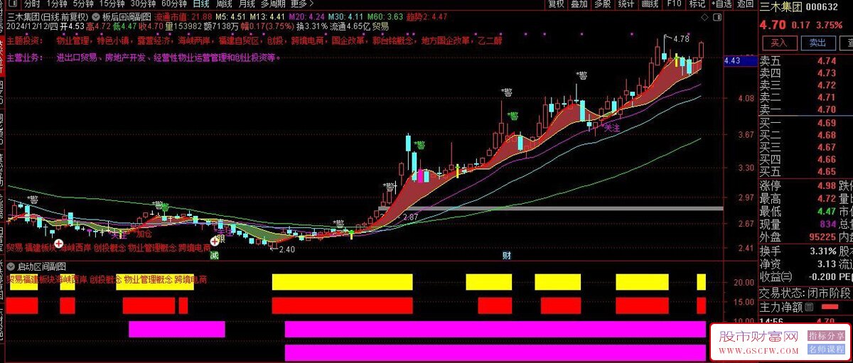 指标名称:通达信板后回调主图+启动区间副图+潜伏启动副图选标