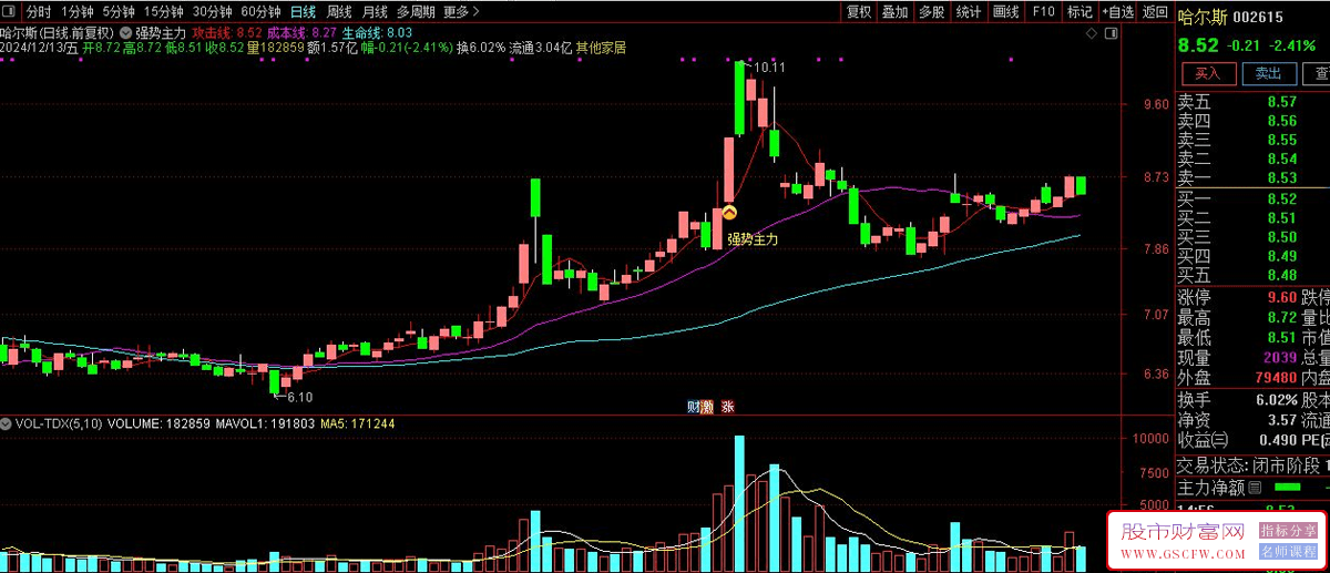 指标名称:通达信强势主力主图+选股指标 强势股拉升选股预警