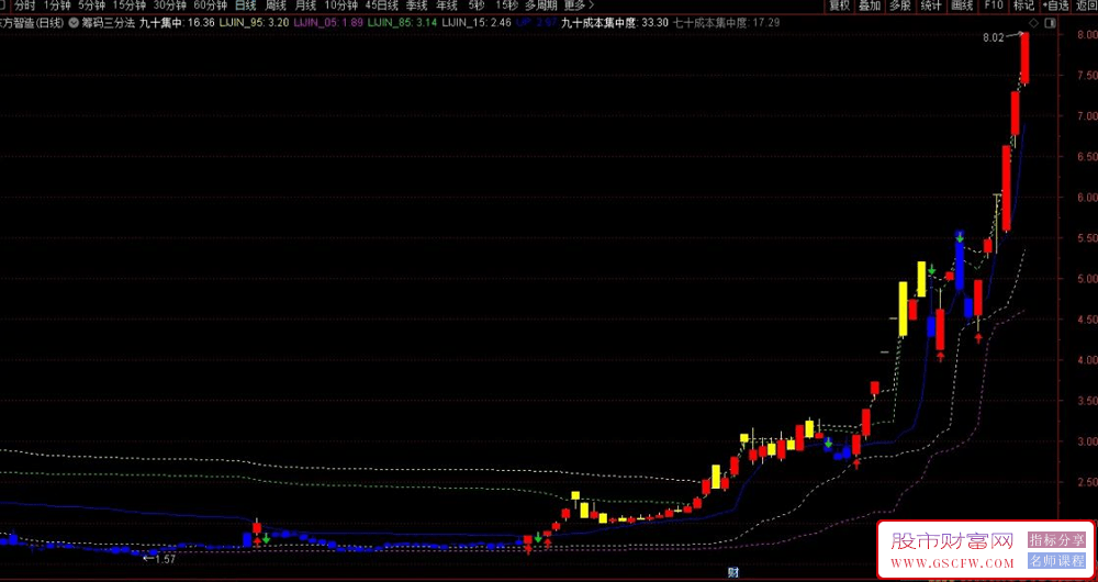 指标名称:通达信【筹码三分法】主图指标 揭秘强势股拉升的核心逻辑 领会后终生受益