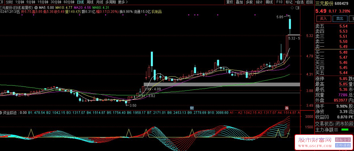 通达信【资金踪迹】副图指标,上攻三角形态选股_展示图_01