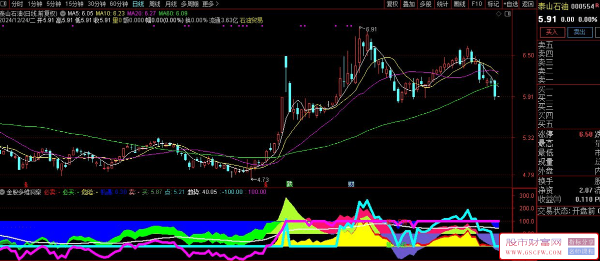 3、观察相关指标变换后的相对位置情况,帮助判断股价在不同条件下的状态。