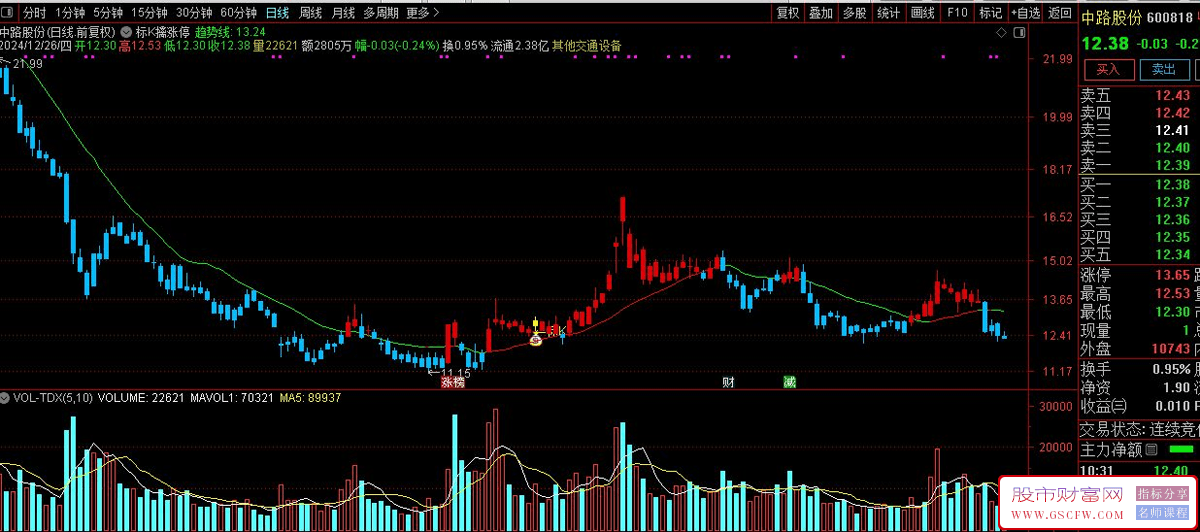 主图中的趋势线是18日线,趋势向上的时候,颜色变为红色,绿色是向下的趋势;