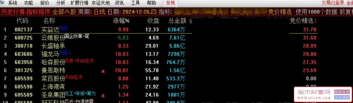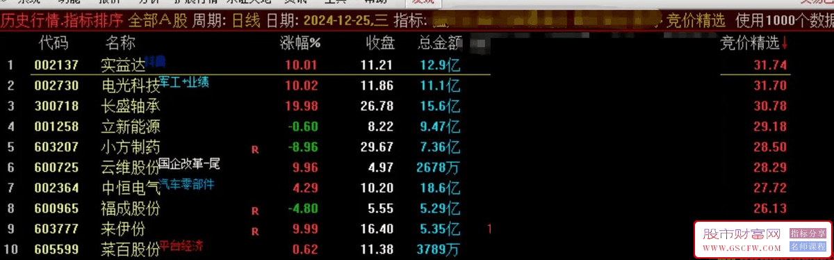 通达信【竞价精选】指标,竞价排序选择排名第一_展示图_01