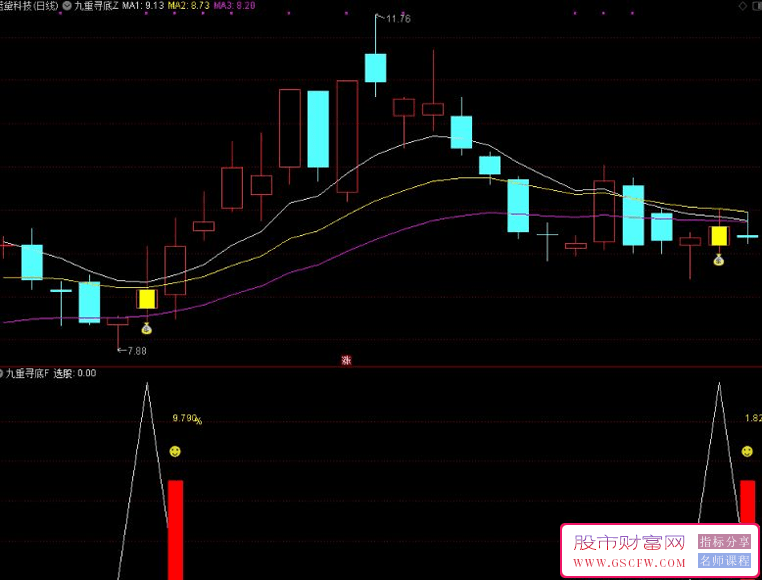 通达信【九重寻底】主副图+选股,二浪寻底思路,尾盘T+1策略,指标源码,无未来_展示图_01 ...