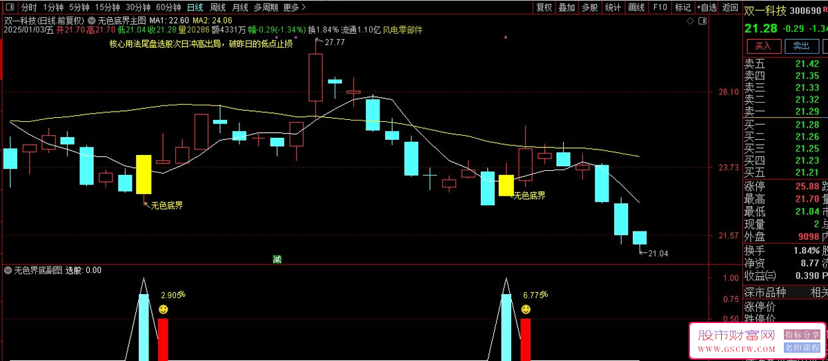 通达信【无色界底】主副图+选股,尾盘抄底超级短线,信号少高胜率,非强股模式无未来_展示图_01