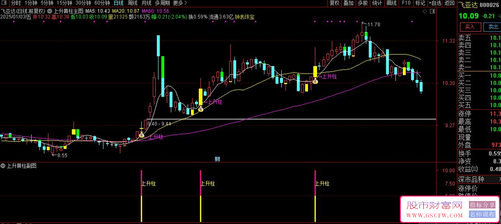 通达信【上升黄柱】主副图+选股,本指标专为短线波段操作者设计_展示图_03