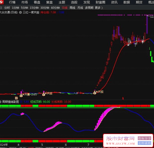 “三红共振”一词源于指标中的多个红色+紫色信号(共振)同时出现的情况。