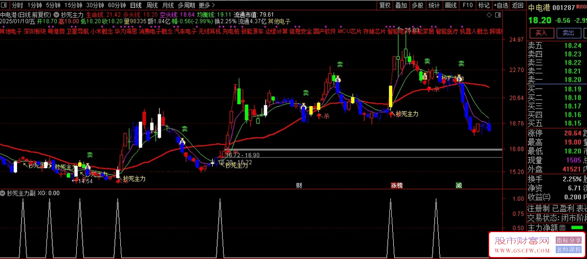 指标名为“抄死主力”主图指标,包含选股指标,指标没有有未来函数。