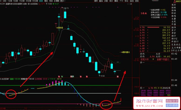 3.主图反转启动信号,副图山谷红柱见底信号共振是确定性的打板机会。