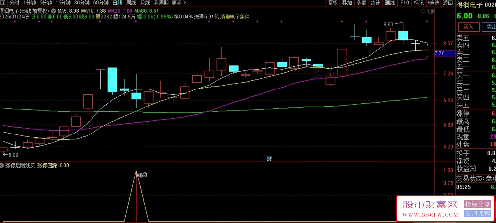 通达信【涨停后阴线买】副图+选股,做的是回踩买入,小赚常有自用指标_展示图_01