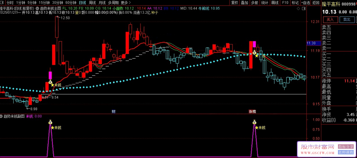指标名称:通达信【趋势来钱】主副图+选股指标 识别市场的短期与中期趋势