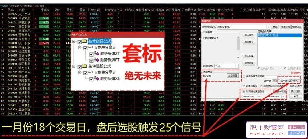 指标信号:1个月20只左右,市场普涨时会略多,无设定涨幅自然触发,每日信号平均很少;