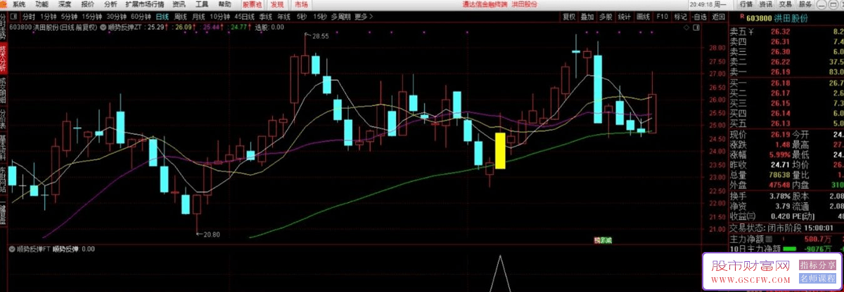 通达信【顺势反弹】主副图+选股,触发信号分时企稳均价线可低吸,信号极少_展示图_05
