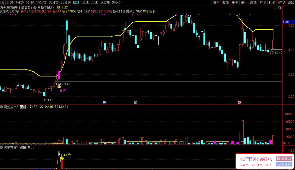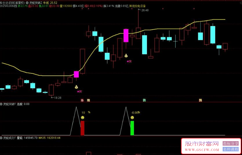 指标名称:通达信【灵蛇突破】主副图+选股 尾盘买入 次日最高价卖出胜率是86%