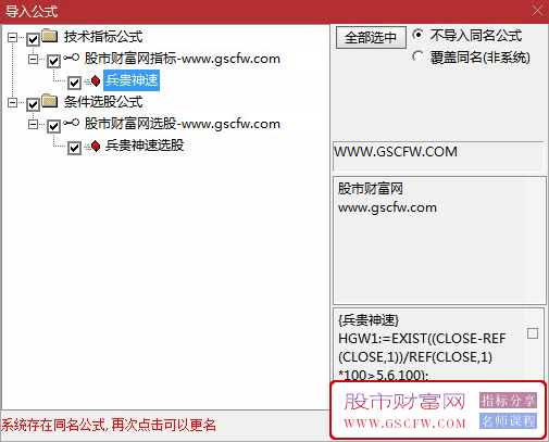 公式名为“兵贵神速”副图公式,包含选股公式及预警公式,公式不含未来函数。