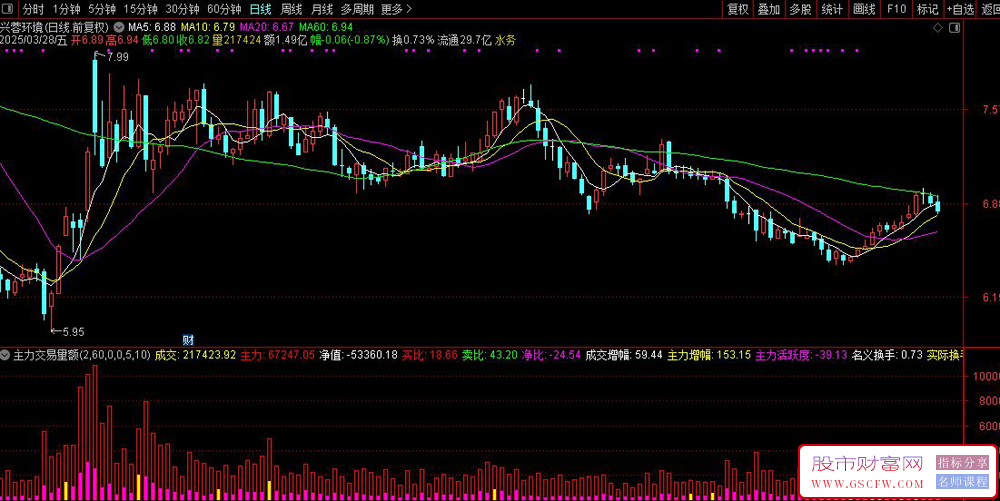 指标名称:通达信【主力成交额】副图指标 主力痕迹和活跃度一目了然可 加入衰减系数等多元参数
