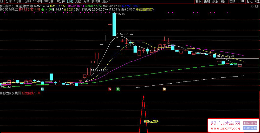 指标名称:通达信指〖妖龙回头〗副图+选股指标 抓住强势股的回调机会