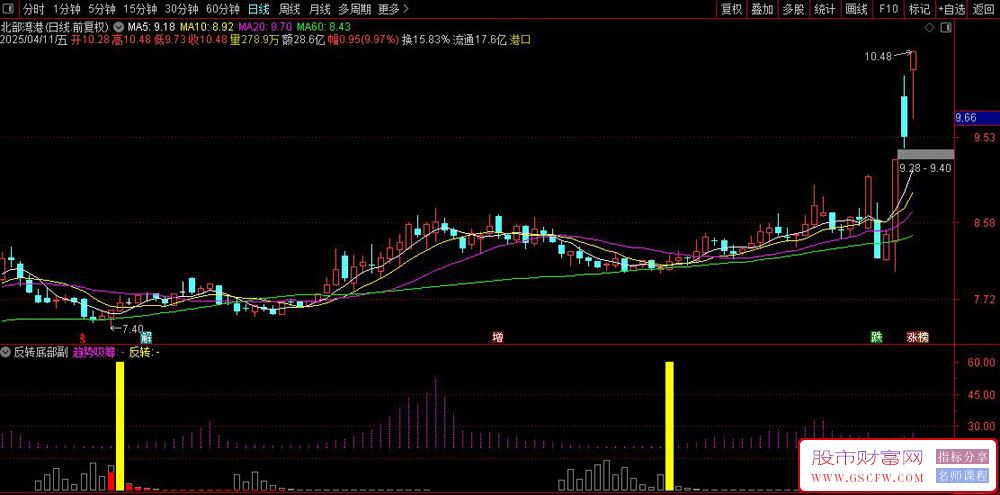 指标名称:通达信〖反转底部〗副图+选股指标 强大的底部信号捕获能力