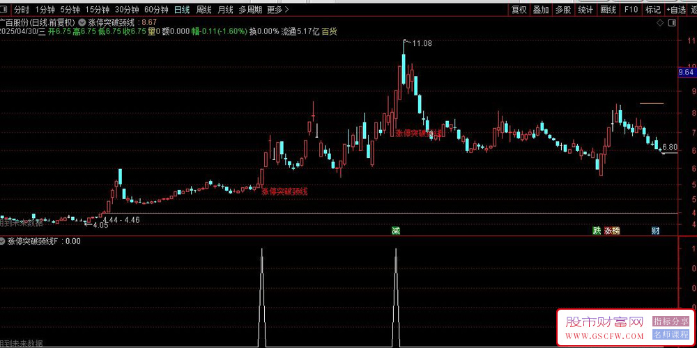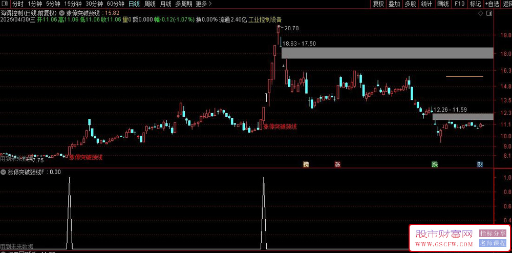 指标名称:通达信〖涨停突破颈线〗主副图+选股 突破有效性增强